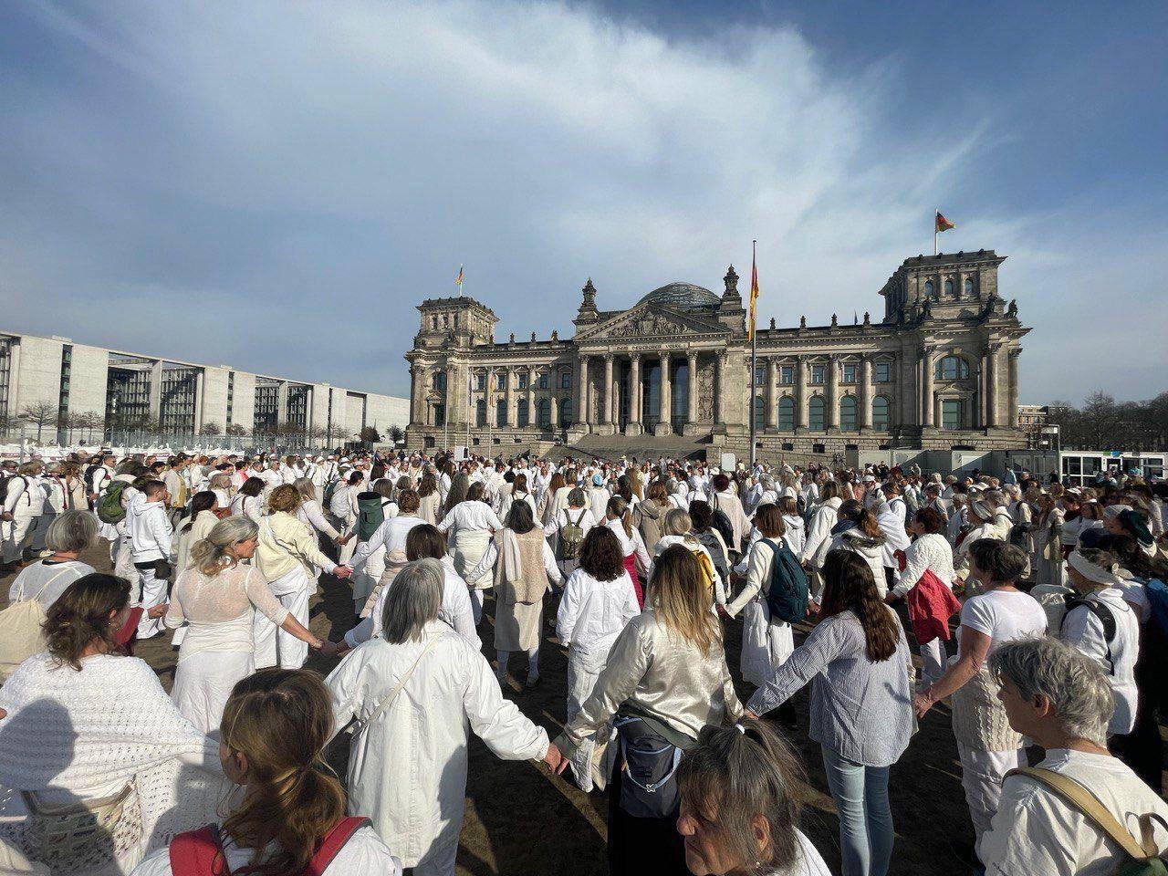 • Stattdessen stehen Frauen in Stille vor dem Reichstag