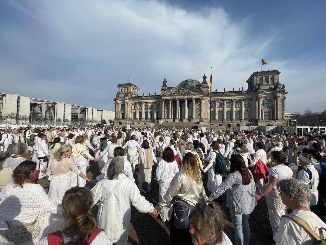 Friedensaktion von Frauen am 8. März 2026 vor dem Berliner Reichstagsgebäude